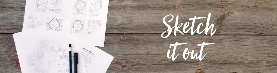 It’s sketch time for your custom design! I’ll begin with 2-3 rough sketches of your invitation and RSVP card (if applicable) to get a general idea for layout and content. You can review them and let me know which you love, or what I can change to make you love it! After 2 rounds of revisions on your chosen sketch, we are ready to move forward to the next stage: the refined drawing!