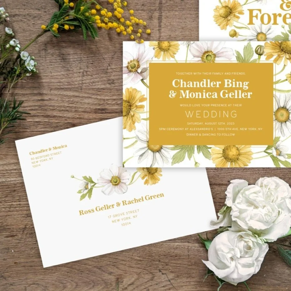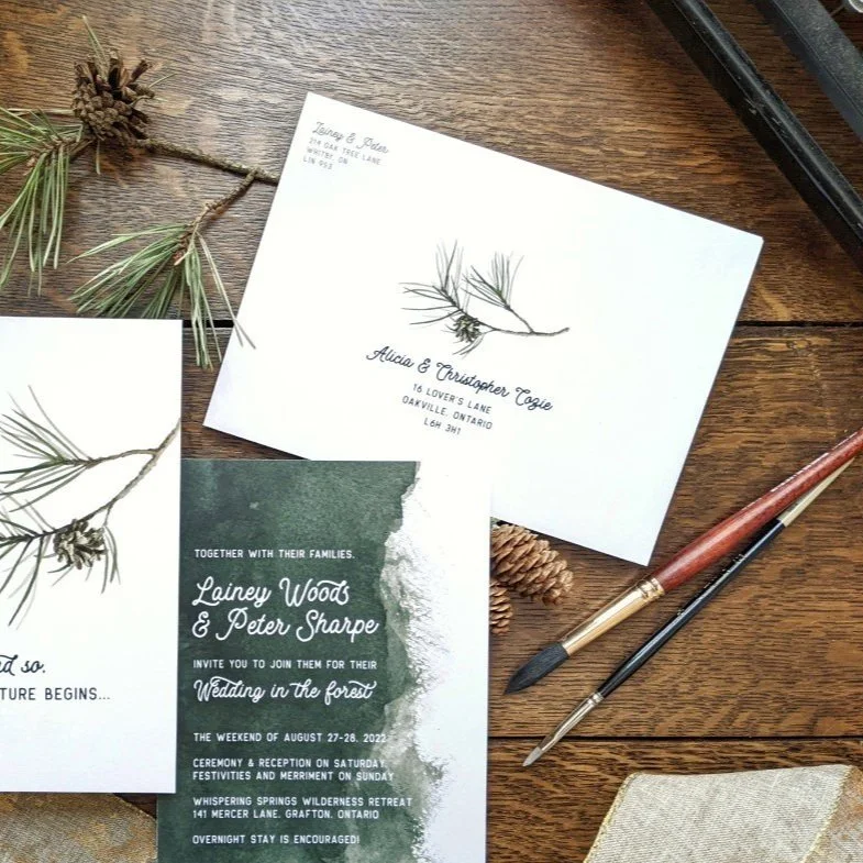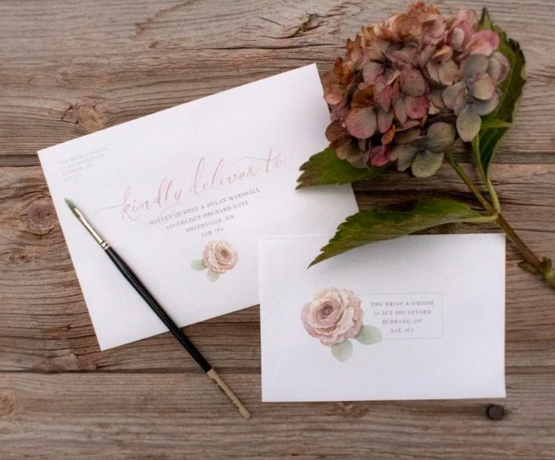 Envelope Printing can match any design, with each guest's address, return address and a part of the illustration!